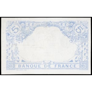 FRANCE - FRANCE 5 francs type “bleu” 17 janvier 1917.
