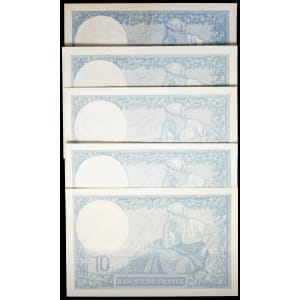 FRANCE - FRANCE Lot (5) - 10 francs type “Minerve” 20-5-1922 au 26-4-1926.