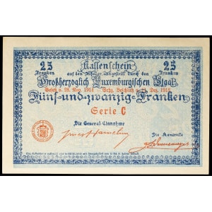 LUXEMBOURG - LUXEMBOURG Bon de caisse 25 francs avec décrets 11 décembre 1918 (1919).…