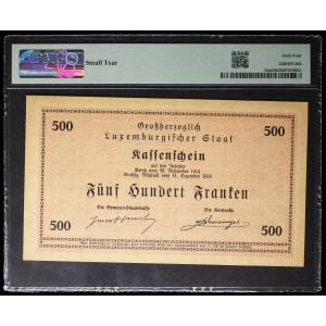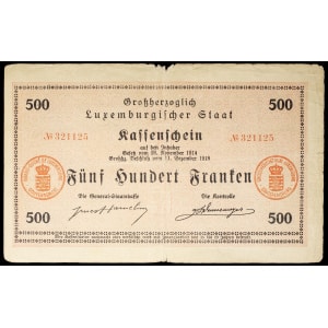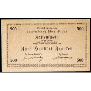LUXEMBOURG - LUXEMBOURG Bon de caisse 500 francs avec décrets, non émis (Remainder) 11 décembre 1918 (1919).…