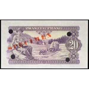 LUXEMBOURG - LUXEMBOURG 20 francs avec le portrait de la grande-duchesse Charlotte (SPÉCIMEN) 1943.…