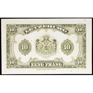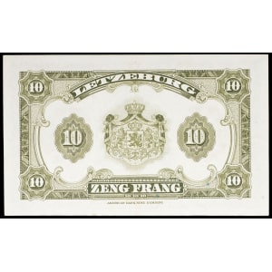 LUXEMBOURG - LUXEMBOURG 10 francs avec le portrait de la grande-duchesse Charlotte (SPÉCIMEN) ND (1944).…