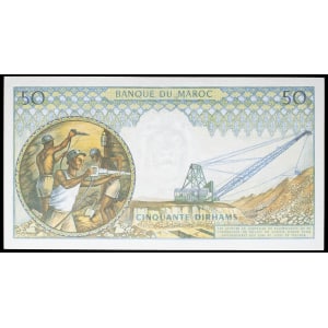 MAROC - MOROCCO 50 dirhams avec le portrait du roi Hassan II type “kasbah des Oudayas” 1968 / AH 1367.…