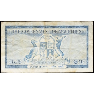 MAURICE (Île) - MAURITIUS 5 rupees avec le portrait de la reine Élisabeth (Elizabeth) II ND (1954).…