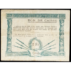 NOUVELLE-CALÉDONIE - NEW CALEDONIA 2 francs type “vert et noir” - Trésorerie de Nouméa 14 novembre 1918.…