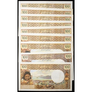 NOUVELLE-CALÉDONIE - NEW CALEDONIA Lot (9) - 100 francs - Institut d’Émission d’Outre-Mer ND (1969).…