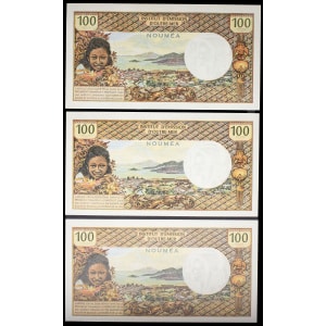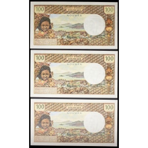 NOUVELLE-CALÉDONIE - NEW CALEDONIA Lot (3) - 100 francs, type modifié avec “RÉPUBLIQUE FRANÇAISE” et numéros c…
