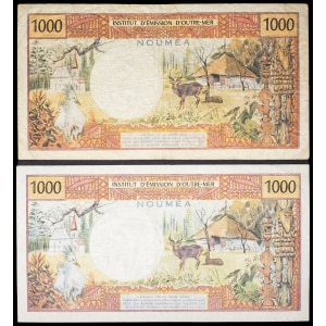 NOUVELLE-CALÉDONIE - NEW CALEDONIA Lot (2) - 1000 francs et 1000 francs, type modifié avec “RÉPUBLIQUE FRANÇAI…