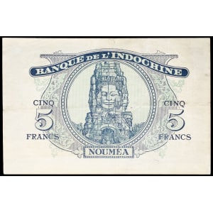 NOUVELLES-HÉBRIDES - NEW HEBRIDES 5 francs type “Minerve” bleu avec surcharge “FRANCE LIBRE” - Banque de l’Ind…