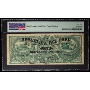 PÉROU - PERU 100 centavos de Inca surchargé sur 100 soles 1er septembre 1881.