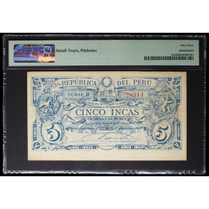 PÉROU - PERU 50 soles surchargé sur 5 incas 1881.