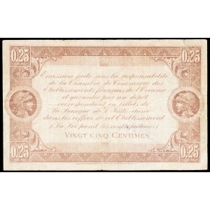 POLYNÉSIE FRANÇAISE / ÉTABLISSEMENTS DE L’OCÉANIE - FRENCH POLYNESIA / FRENCH OCEANIA 25 centimes type “Chambr…