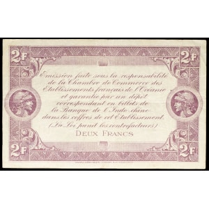 POLYNÉSIE FRANÇAISE / ÉTABLISSEMENTS DE L’OCÉANIE - FRENCH POLYNESIA / FRENCH OCEANIA 2 francs type “Chambre d…
