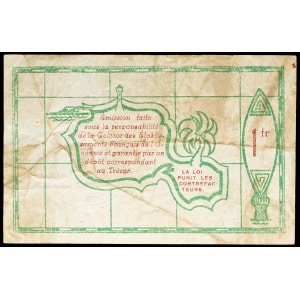 POLYNÉSIE FRANÇAISE / ÉTABLISSEMENTS DE L’OCÉANIE - FRENCH POLYNESIA / FRENCH OCEANIA Bon de 1 franc type “ver…