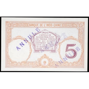 POLYNÉSIE FRANÇAISE / TAHITI - FRENCH POLYNESIA / TAHITI 5 francs type "Walhain" (SPÉCIMEN ANNULÉ / CANCELLED)…