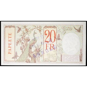 POLYNÉSIE FRANÇAISE / TAHITI - FRENCH POLYNESIA / TAHITI 20 francs type “paon” (SPÉCIMEN ANNULÉ / CANCELLED) -…