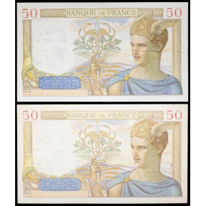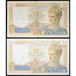 FRANCE - FRANCE Lot (2) - 50 francs type “Cérès” modifié 26-8-1937 et 9-9-1937.…