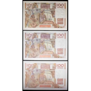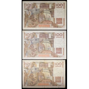 FRANCE - FRANCE Lot (3) - 100 francs type “jeune paysan” 21-11-1946 au 9-1-1947.…