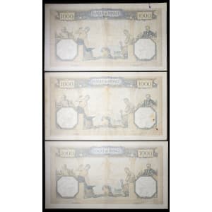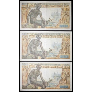 FRANCE - FRANCE Lot (3) - 1000 francs type “Déesse Déméter” 24-9-1942 au 22-10-1942.…