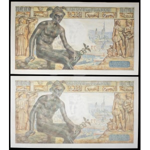 FRANCE - FRANCE Lot (2) - 1000 francs type “Déesse Déméter” 5-11-1942 et 19-11-1942.…