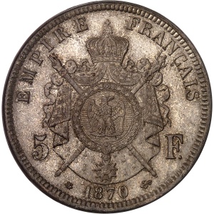 FRANCE Second Empire / Napoléon III (1852-1870). 5 francs tête laurée 1870, A, Paris.…