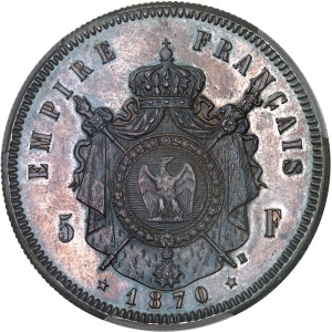 FRANCE Napoléon IV (1856-1879). Essai de 5 francs, revers à l’écu rond, Frappe spéciale (SP) 1870, Bruxelles (…