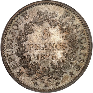 FRANCE IIIe République (1870-1940). 5 francs Hercule 1873, A, Paris.