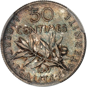 FRANCE IIIe République (1870-1940). 50 centimes Semeuse 1897, Paris.
