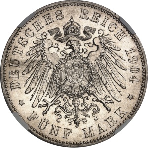 ALLEMAGNE - GERMANY Schaumburg-Lippe, Georges (1893-1911). 5 (fünf) mark 1904, A, Berlin.…