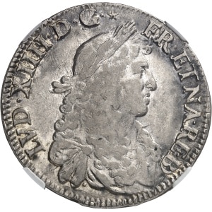 FRANCE / CAPÉTIENS Louis XIV (1643-1715). Écu au buste juvénile, 2e poinçon d’effigie 1669, L, Bayonne.…