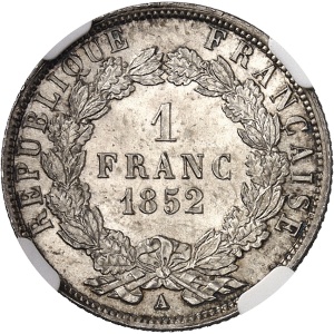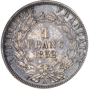 FRANCE IIe République (1848-1852). 1 franc Louis-Napoléon Bonaparte 1852, A, Paris.…