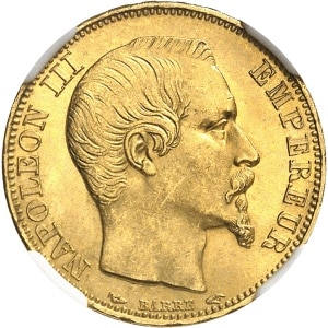 FRANCE Second Empire / Napoléon III (1852-1870). 5 francs tête nue petit module, tranche cannelée 1854, A, Par…