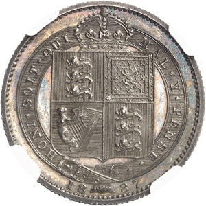 GRANDE-BRETAGNEVictoria (1837-1901). Shilling, jubilé de la Reine, Flan bruni (PROOF) 1887, Londres.…