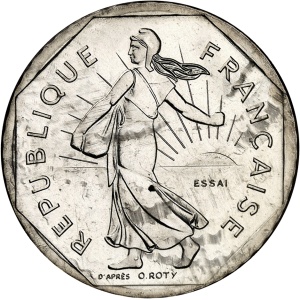 FRANCE - FRANCE Ve République (1958 à nos jours). Présérie de 2 francs Semeuse, tranche et listel à 11 pans, F…