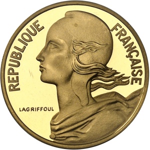FRANCE - FRANCE Ve République (1958 à nos jours). Piéfort de 10 centimes Marianne en or, Frappe spéciale (SP) …
