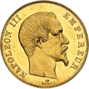 FRANCE - FRANCE Second Empire / Napoléon III (1852-1870). Essai de 50 francs tête nue, tranche lisse, Flan bru…