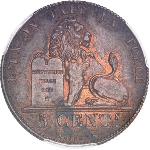 BELGIQUE - BELGIUM Léopold Ier (1831-1865). 5 centimes au lion 1855, Bruxelles.
