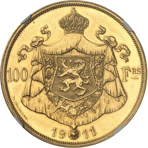 BELGIQUE - BELGIUM Albert Ier (1909-1934). Essai de 100 francs Or, légende française et 100 - FRS, par Devrees…