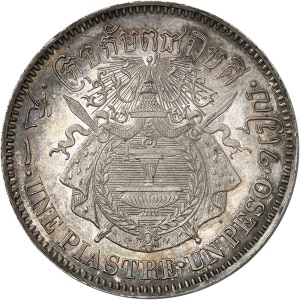 CAMBODGE - CAMBODIA Norodom Ier (1860-1904). Épreuve de Une piastre - Un peso, sur flan en cuivre argenté, tra…