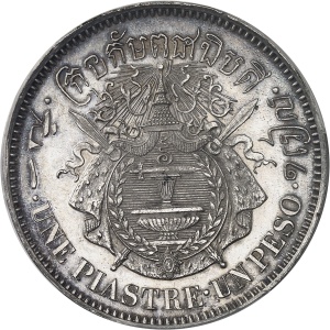 CAMBODGE - CAMBODIA Norodom Ier (1860-1904). Épreuve de Une piastre - Un peso, sur flan en étain argenté, tran…