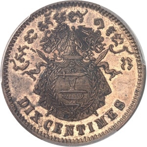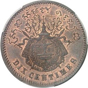 CAMBODGE - CAMBODIA Norodom Ier (1860-1904). Essai de dix centimes, sur flan en bronze, Flan bruni (PROOF / SP…