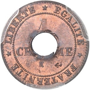 COCHINCHINE - COCHINCHINA IIIe République (1870-1940). Sapèque (sur 1 centime Cérès percée) 1875 (1878), K, Bo…