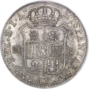 ESPAGNE - SPAIN Joseph Napoléon (1808-1813). 20 réales au différent inversé 1810 IA, M couronnée, Madrid.…