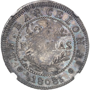 ESPAGNE - SPAIN Joseph Napoléon (1808-1813). 2 1/2 pesetas 1808, Barcelone.
