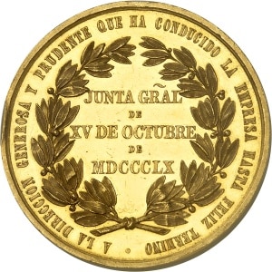ESPAGNE - SPAIN Isabelle II (1833-1868). Médaille d’Or, Chemin de fer de Jerez à Cadix terminé en 1851 1860, L…