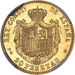 ESPAGNE - SPAIN Alphonse XIII (1886-1931). 20 pesetas, buste adolescent 1892 (18-92) PG, M, Madrid.…