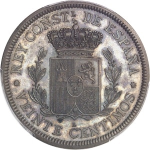 ESPAGNE - SPAIN Isabelle II (1833-1868). 40 pesetas en platine, frappe de fantaisie pour le Dr Reginal Huth, F…