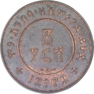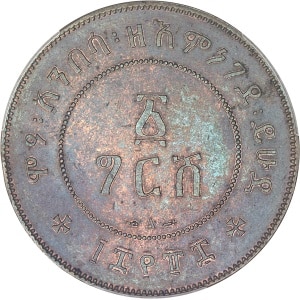 ÉTHIOPIE - ETHIOPIA Menelik II (1889-1913). Gersh EE 1888 (1896), A, Paris.