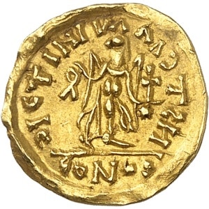 FRANCE / MÉROVINGIENS - FRANCE / MEROVINGIAN Burgondes. Trémissis dit à la boucle perdue, imitation de Justini…