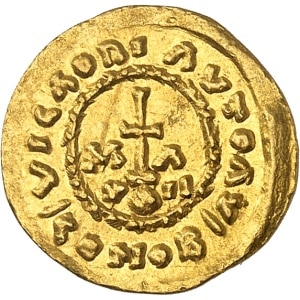 FRANCE / MÉROVINGIENS - FRANCE / MEROVINGIAN Marseille, au nom de Maurice Tibère. Trémissis de VII (7) silique…